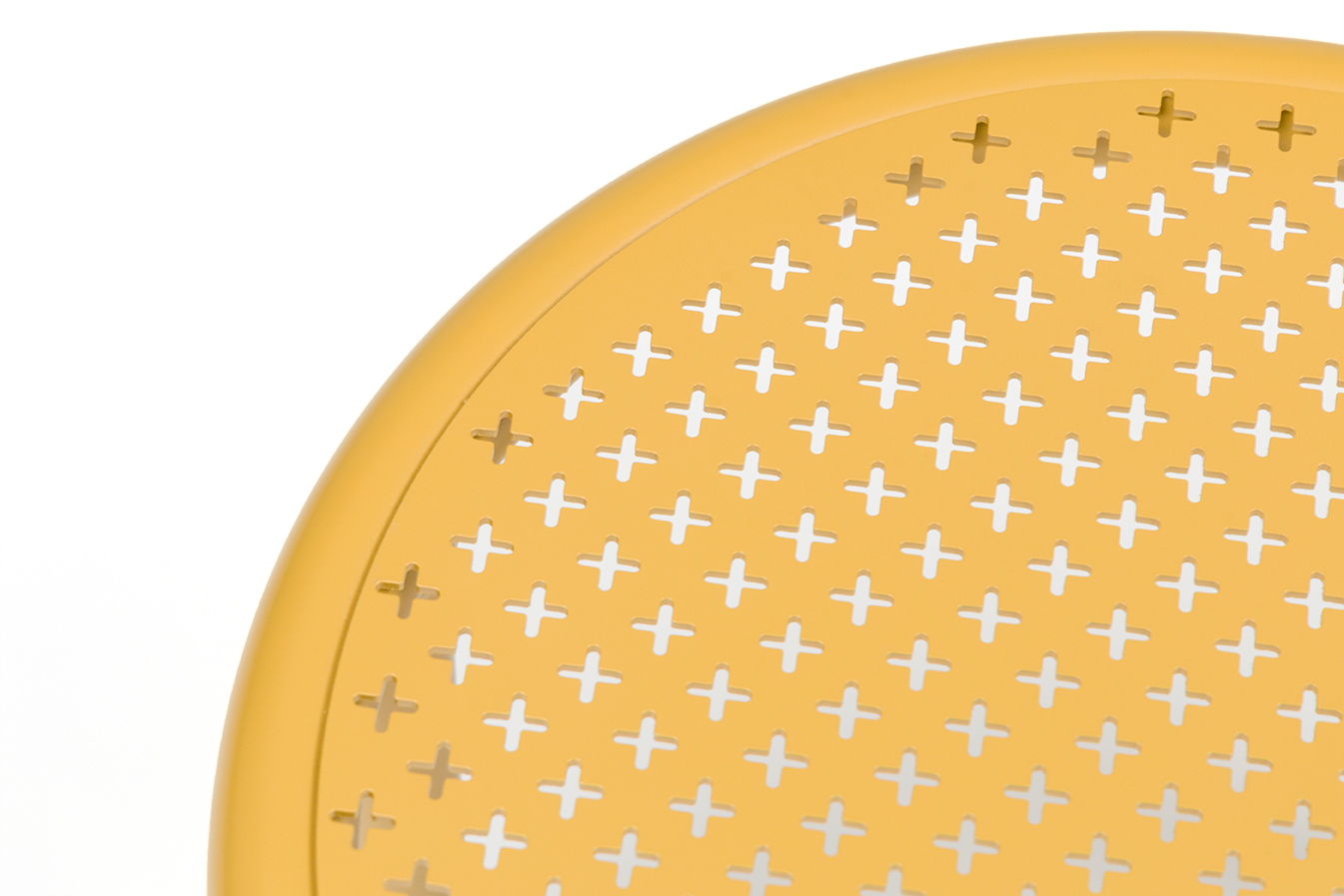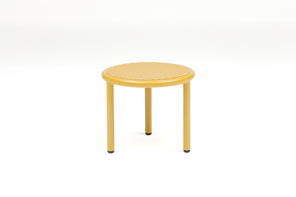 The minimalist, elegant tables rest on three legs and adapt to both tastes and spaces. Their grid finish, specially designed for the collection, pays modern homage to classic garden furniture.